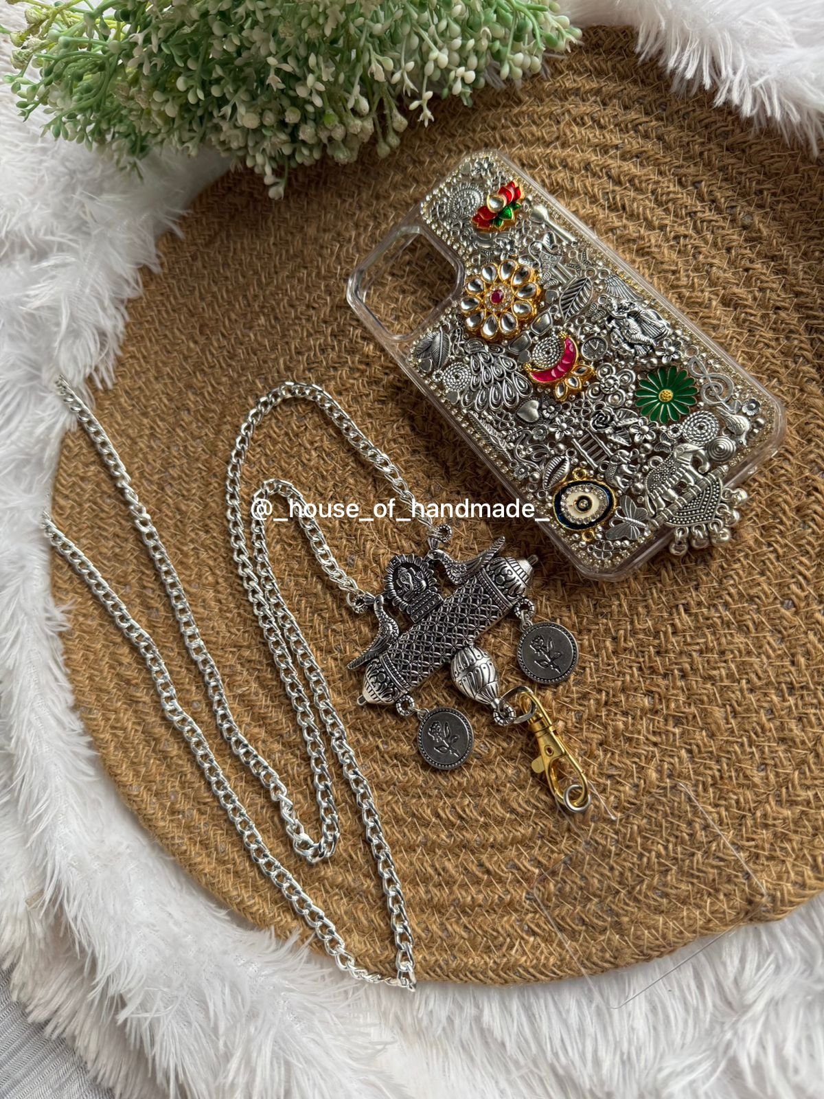 Add a bold ethnic statement to your tech accessories with this Handmade Ethnic Phone Case Cover. Carefully crafted using high-quality materials, this case is adorned with metallic charms, intricate motifs, and vibrant embellishments that give it a festive and artistic touch. Designed to be both protective and stylish, it provides a sturdy shield for your phone while enhancing its appearance with a unique cultural flair. Perfect for bridal occasions, festive celebrations, or simply to stand out in everyday life, this handcrafted case is lightweight, easy to handle, and complements both ethnic and modern outfits. Whether gifting or upgrading your phone’s look, this ethnic phone cover with charms is a must-have accessory for fashion lovers and trendsetters alike!