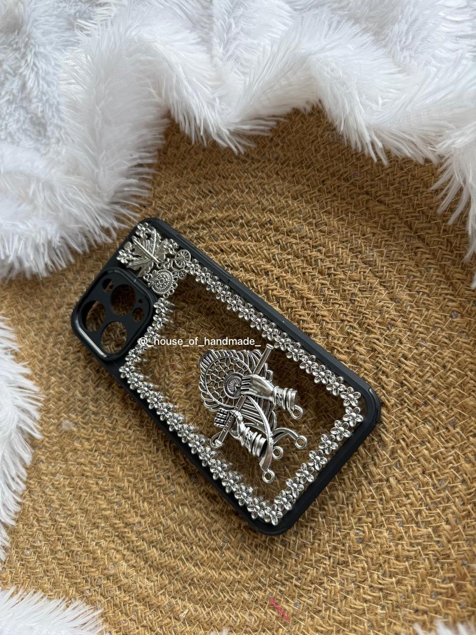 • 🌸 Handmade phone case with oxidised silver detailing.