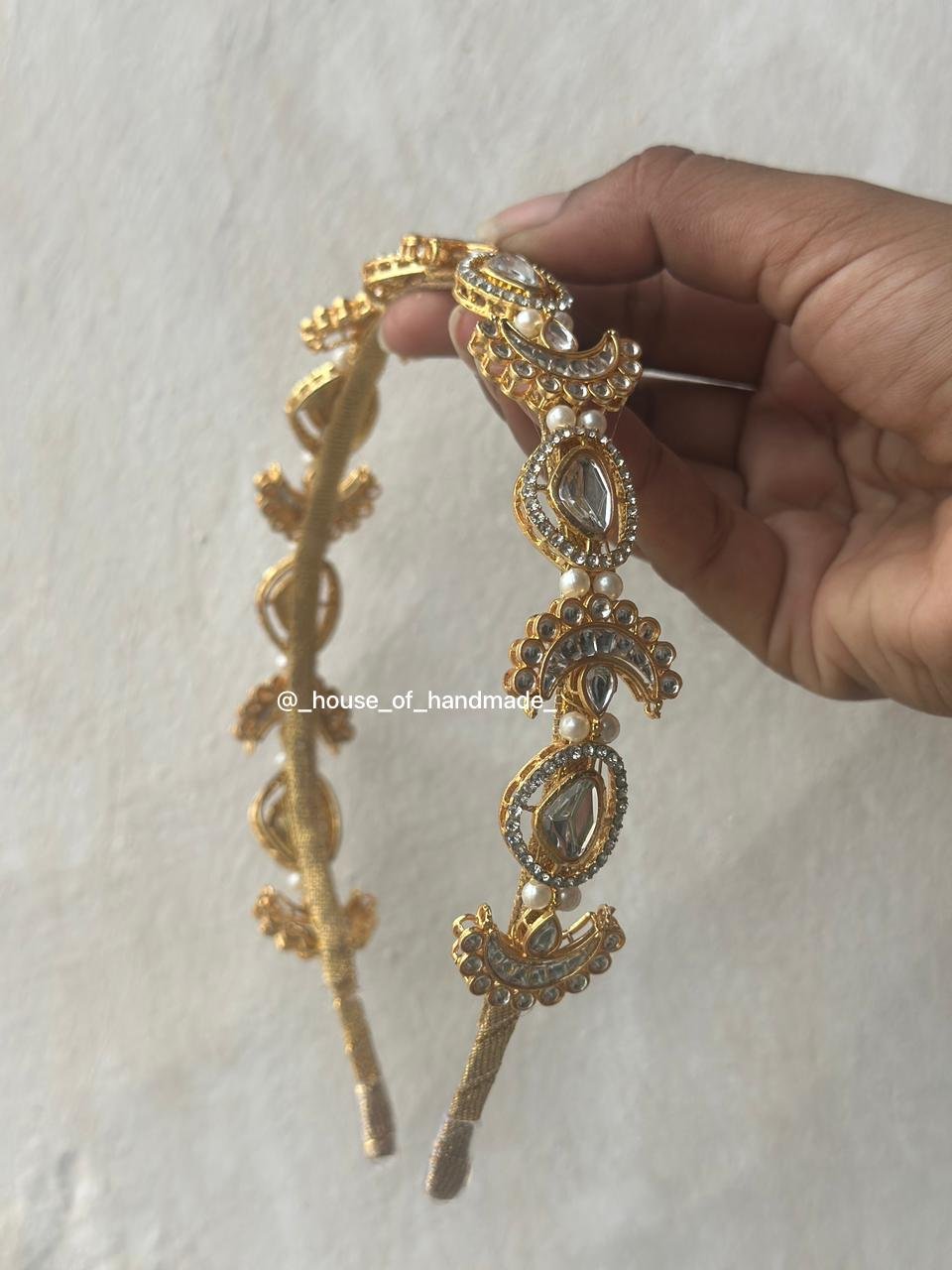 Step into the spotlight with this Royal Kundan Gold Bridal Headband, a luxurious and finely handcrafted piece designed to elevate your ethnic and bridal ensembles. Meticulously adorned with classic Kundan stones, glistening pearls, and a rich antique gold finish, this headband showcases expert artistry and a design inspired by royal Indian heritage.